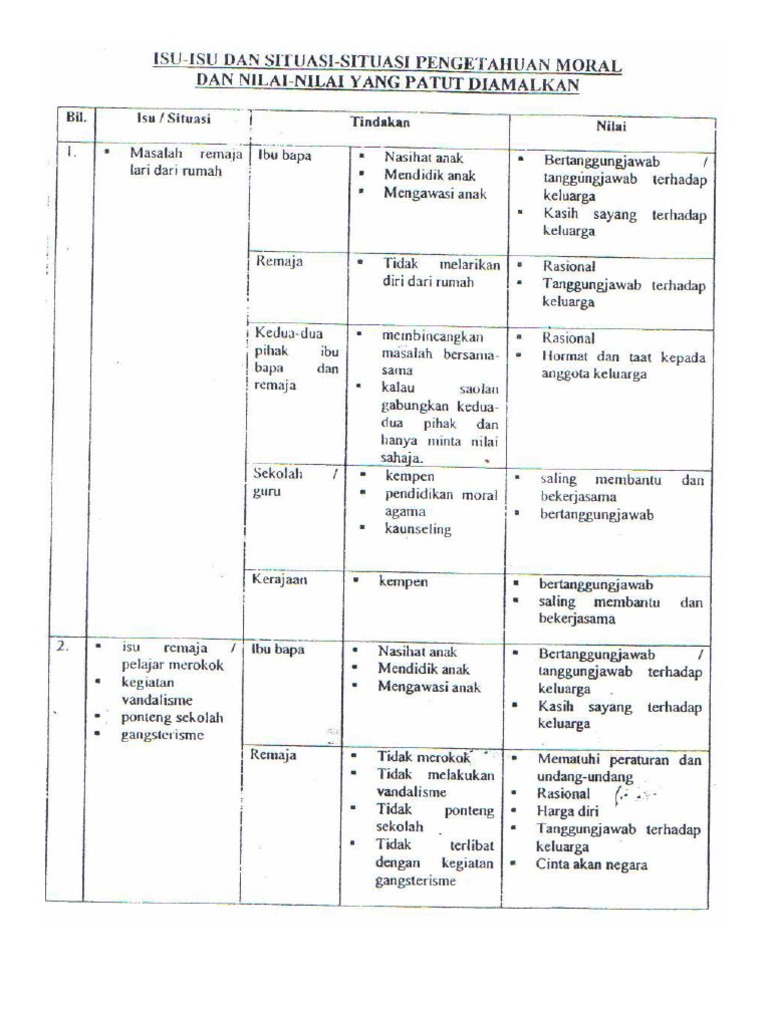 HSP Pendidikan Moral Tingkatan 1. RPT Fizik Tingkatan 5 2021 KSSM. Values and Citizenship The values contained in the secondary Moral Education syllabus have been incorporated in the learning outcomes and include patriotism and good.